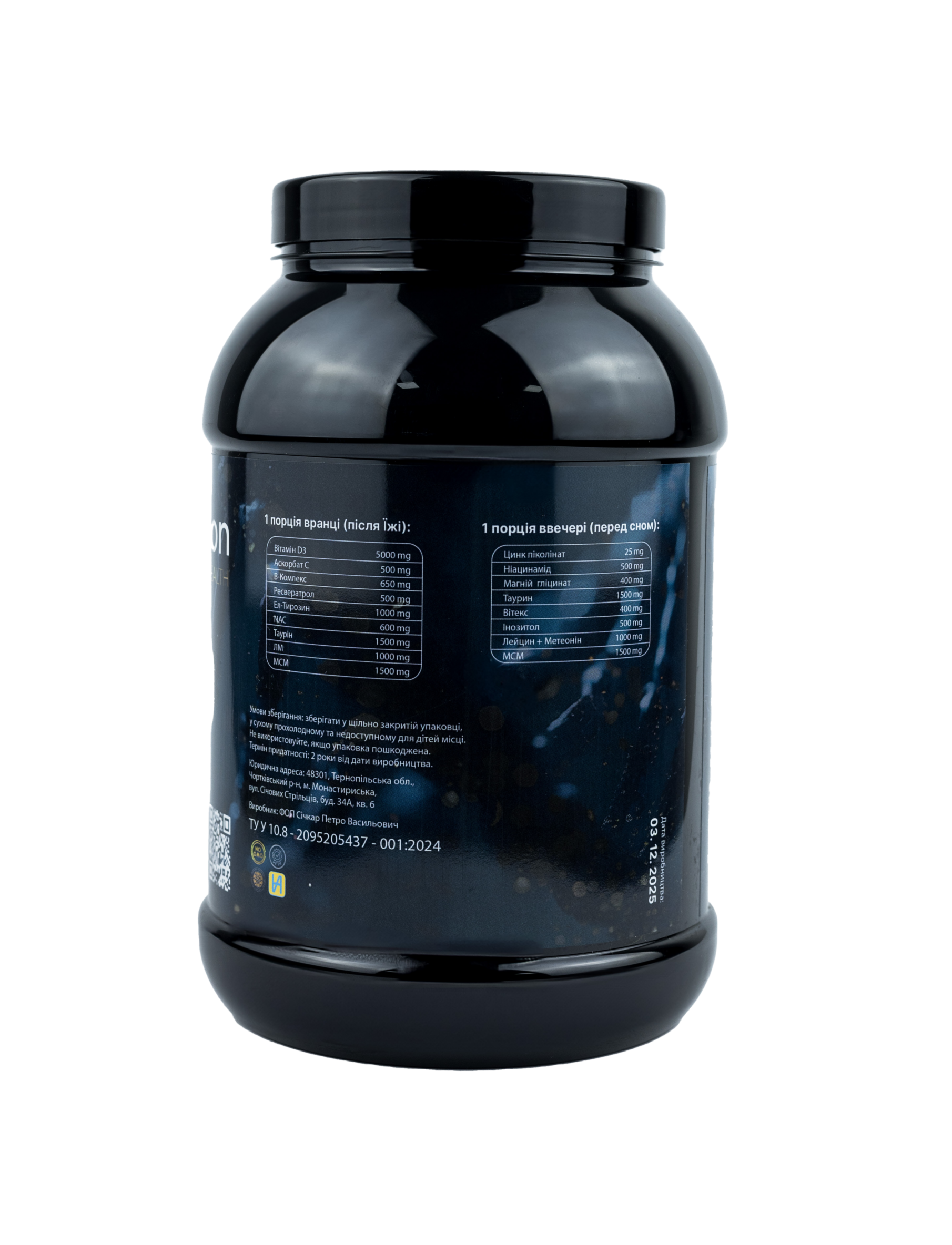Склад: Вітамін D3, Аскорбат С-500, B-комплекс, Ресвератрол, L-Тирозин, NAC, MSM, Цинк піколінат, Ніациномід, Магній гліцинат, Таурин, Лейцин метіонін, Вітекс, Інозитол, мікрокристалічна целюлоза, антиспікаційний агент рослинний стеарат магнію; желатин (для капсул).