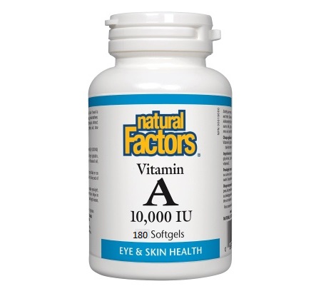 Вітамін А Vitamin A Natural Factors 3000 мкг 10000 МО 180 капсул — це концентрована форма вітаміну A, придатна для заповнення дефіциту в дорослих. Препарат підійде тим, у кого знижений зір у сутінках, спостерігається сухість очей, шкіри та слизових, підвищена чутливість до інфекцій або проблеми з відновленням після хвороб. Формула легко засвоюється, працює швидко і може використовуватися курсами за вираженої нестачі ретинолу.